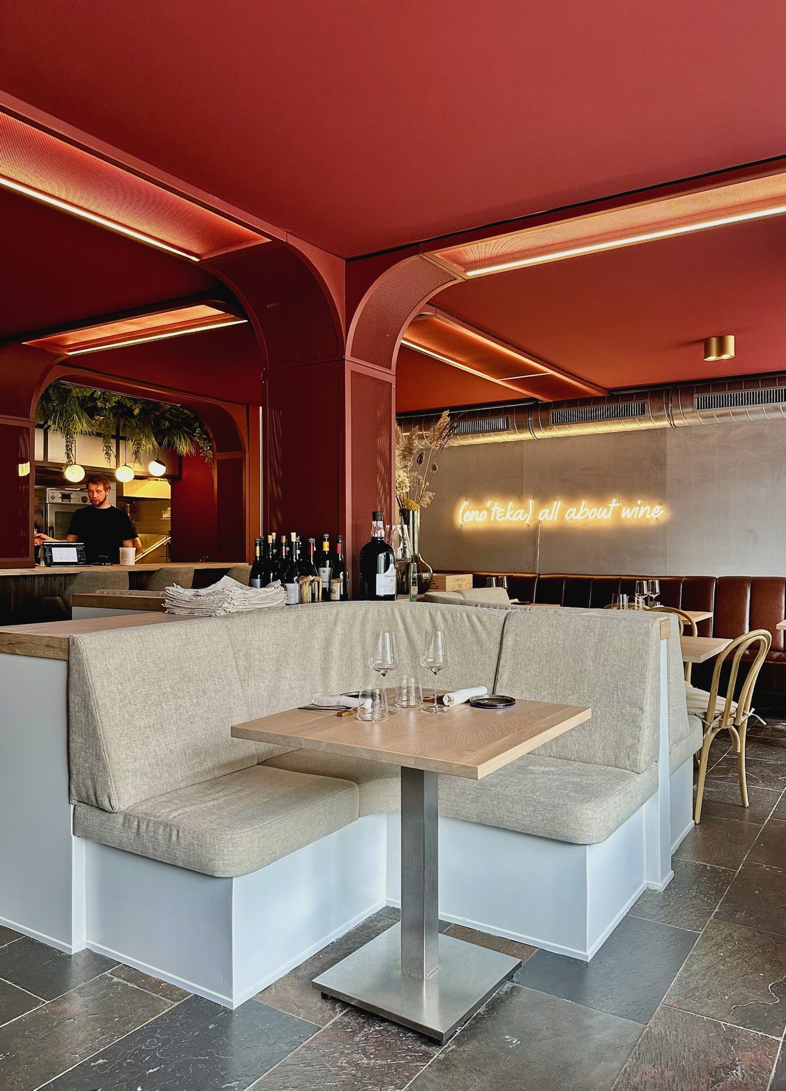 Lukas: “It’s a nod to ‘enoteca,’ an Italian term for a place where wine is stored and enjoyed. That idea suits us. Our place was born out of love for wine. We serve and sell top-quality wines, but in an approachable way. You don’t need to be an expert to enjoy something great.”