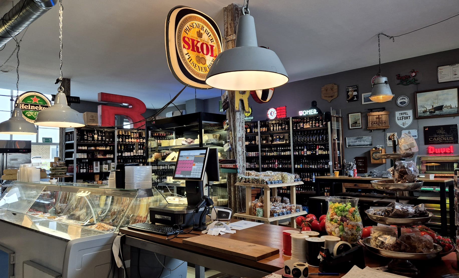 De lokale traiteur vol lekkers én een indrukwekkend assortiment wijn en bier.